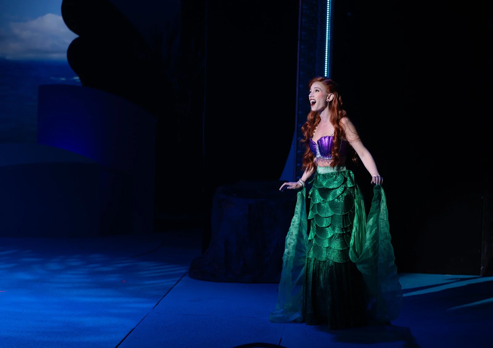 “Sarah Daniels absolutely shines as Ariel. Our jaws were dropping as she “swam” above our heads, moving gracefully through the air while flawlessly singing “Part of Your World.” I’d love to know what it took for her to manage such great breath support while being suspended from a harness! Just amazing.”